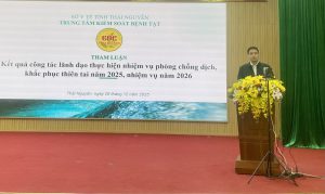 Ảnh 4: Lãnh đạo Trung tâm Kiểm soát bệnh tật tỉnh tham luận tại Hội nghị.